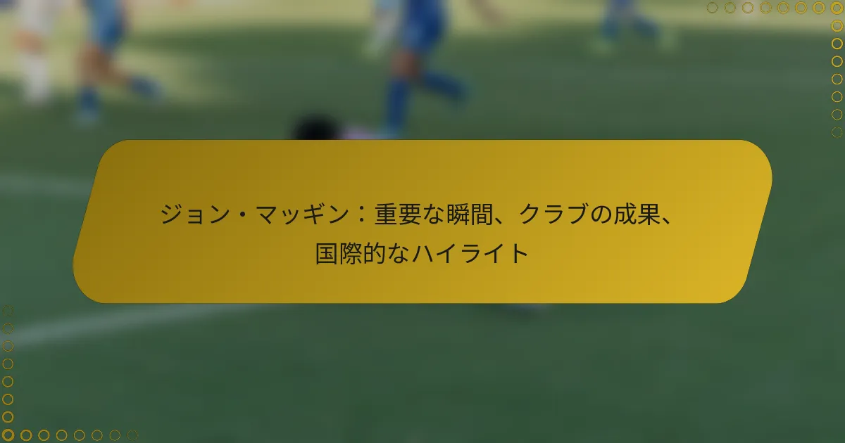 ジョン・マギンのキャリアは、プロサッカー選手としての評判を形作る重要な瞬間や素晴らしい成果によって際立っています。クラブと国際レベルの両方で影響力のあるパフォーマンスを発揮し、勝利を確保し、世界の舞台で彼の才能を示す重要な役割を果たしてきました。