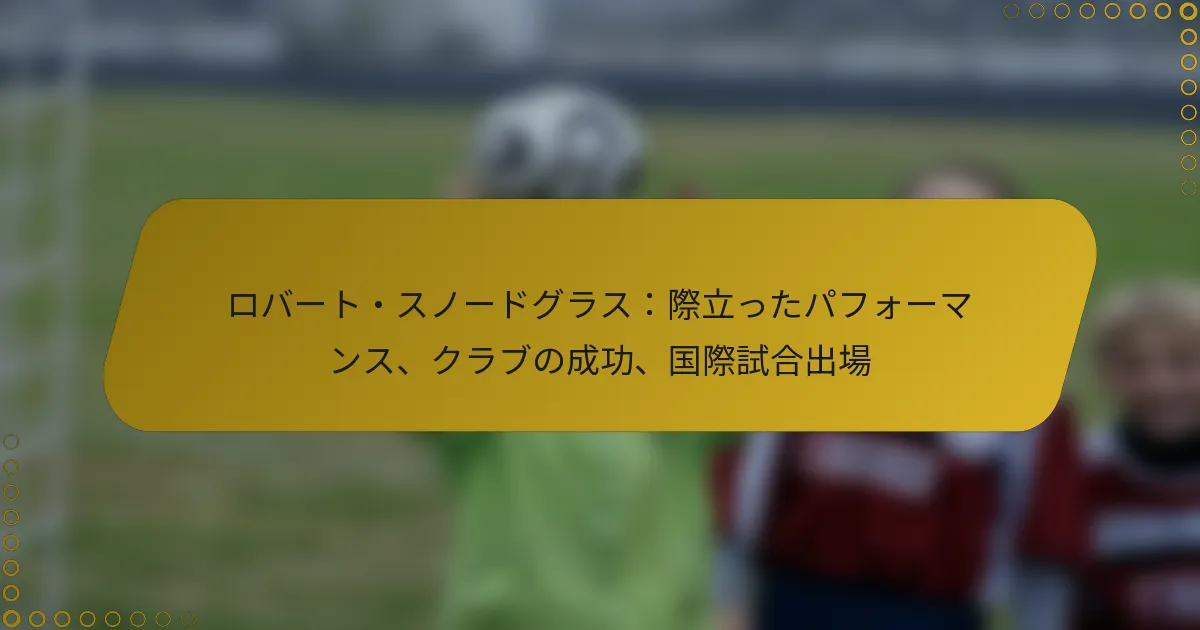 ロバート・スノドグラスは成功したクラブキャリアを持っていますが、彼の国際的な影響も同様に重要です。クラブレベルでは、彼は英プレミアリーグやチャンピオンシップのいくつかのチームでプレーし、常にゴールやアシストに貢献してきました。
